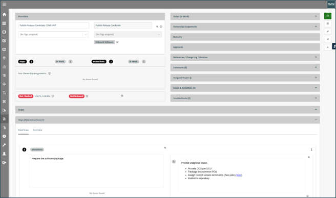 Track the execution of procedures via project dashboards and by this keep track of the readiness of your milestones and project steps.